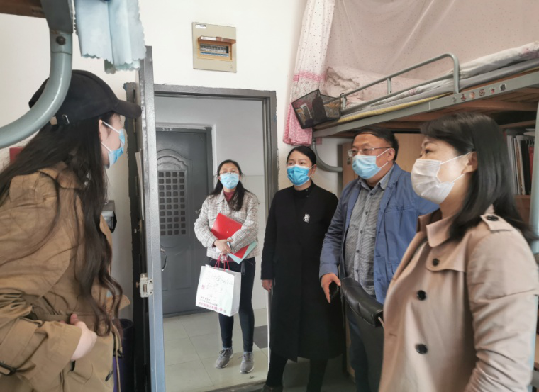 23日下午,院党委书记邱建平、院长魏洁、副书记王晖等一行深入学生宿舍,慰问返校学生,为学生送上口罩、体温计等防疫物资。邱建平亲切询问了同学们的身心健康、学习情况和就业进展,魏洁代表一本道表达了对同学们的深切问候,王晖叮嘱同学们必须严格遵守防控期间学校的各项规章制度,做好自我防护,主动配合完成“一日三测”和“晚点名”。