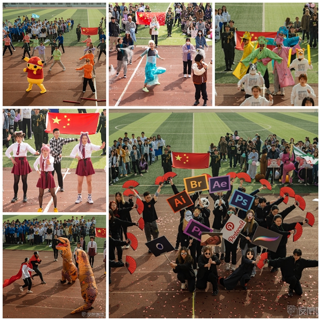 少年可期,风华正茂,国旗班、2020级25个方阵,挥扬着旗帜,昂首阔步先后经过主席台。他们精神抖擞、意气风发,充分展示了我院师生积极进取、勇于争先、昂扬向上的精神状态,赢得了现场师生的阵阵掌声。异彩纷呈的方阵表演令人眼前一亮,设院学子的创新意识和奥运精神在细节处展现的淋漓尽致。表演者动作整齐划一,刚劲有力,一声声响亮的口号喊出了永不言败的决心。各个方阵表演经过精心编排,日夜练习,在开幕式上大放光彩,充分展示了当代设计人的风貌。