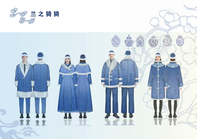 服装与服饰设计专业责任教授沈雷老师亲自组织,在08年北京奥运会颁奖礼服获奖经验的基础上,利用时尚产业最新科技成果,自己参加核心的重要主题的设计,王宏付教授、吴艳副教授、唐颖副教授等积极指挥推动,组织研究生、本科生贾鸿英、许晗、金倩、江润湉等组成各个小组,对冬奥元素和设计理念做了全方位的演绎。