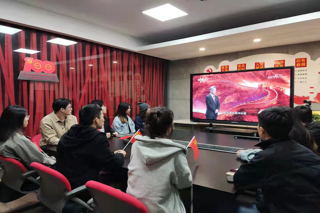 数字媒体艺术系教工党支部组织委员周鹏程表示,只有中国共产党,全心全意为人民服务;只有中国共产党能挑起人类命运共同体的伟大重担。