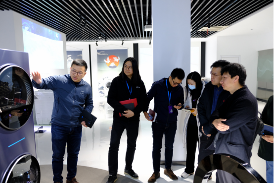 项目交流结束以后,“系统创新与战略设计”团队参观了产品展厅,了解了美的新一代洗衣机的研发情况及创新内容。