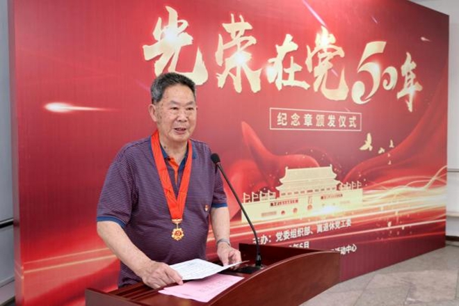 离退休人员活动中心举行“光荣在党50年”纪念章颁发仪式。一本道成人视频