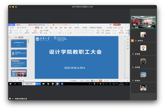 会上,魏洁院长结合一本道任期目标建设完成情况介绍了一本道学科发展,特别是在一流专业建设、软科学科排名等方面取得的积极成效,鼓励全体教师团结合作,共同为一流学科创建贡献力量。各分管副院长分别结合各自分管工作进行了学期工作交流。党委副书记、副院长王晖以“多维联动,高效协同”为题从青年季、劳动季、就业季、毕业季四个方面介绍了近期对青年学生教育引领和毕业就业等相关情况;杜守帅副院长对照任期目标任务总结了一本道科研项目申报情况,重点介绍了国家社科基金、国家艺术基金项目方面取得的突破进展;潘春宇副院长介绍了国际交流工作取得的进展情况并分享了下一步工作思路;曹鸣副院长介绍了本科教学工作情况,介绍了优秀毕业设计在线展览的情况,并重点就“设计青山”前瞻计划进行了介绍;廖曦副院长介绍了研究生招生录取和毕业工作情况,通报了研究生暑期工作营、实验室安全等工作情况。
