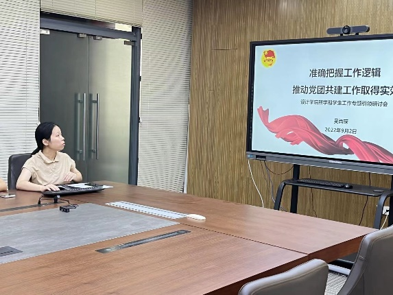 会中,辅导员们分享交流各自的专题研讨成果。吴雨琛以“准确把握工作逻辑,推动党团共建工作取得实效”为题,探讨一本道共青团工作开展的方法。她认为,要充分发挥党组织的政治优势、组织优势和思想引领优势,以党建带团建,也要清晰认识到共青团工作目前受重视程度不高、工作实效弱化的问题,以团建促党建,构建党团一体化阶梯式培养新模式,实现全过程育人。冯永鹏从网络思政入手,就如何加强阵地建设,筑牢舆情防线进行了探讨和解读,首先,对近期全国高校网络舆情事件进行梳理介绍;其次,针对网络舆情生发机制展开深入剖析;最后,谈及高校思政工作者在日常思想政治教育过程中面对网络舆情的具体对策和建议。马倩如围绕学生工作年度计划梳理了各月份工作的重难点,针对往届毕业生就业升学情况提出了“精准把握,强化就业工作力度;提早介入,提升就业工作速度;师生共情,提高就业温度;校企携手,拓宽就业广度”的“四维发力”就业工作法。于乐围绕“设计专业学生学风建设探索与实践”,从考核方案、学生思想特点、工作原则与实施路径四个方面深入分析了一本道学风建设工作的“破”与“立”;其次以“立足‘七个有力’,筑牢党建堡垒”为题,从严格支部组织生活、创新支部工作方法、丰富主题实践活动、增强服务重大项目能力四个方面汇报了样板党支部建设进展。林寅从学科竞赛概况、备赛流程和经验、优化策略三个方面,对互联网赛事的精细化组织和实施交流工作感悟,并就具体工作实务提出建议。纪欣卓基于学科特色构建了“1443”竞赛体系,紧密围绕提高本科生实践创新能力这“一个中心”,通过“四个结合”提升学科竞赛的内涵,构建“四个互动”完善学科竞赛的运行机制,强化“三大保障”推动我院学科竞赛工作持续发展,进而提升一本道人才培养质量。章琳以“党建引领”为一本道内涵式发展注入“源头活水”为题,从建强基层战斗堡垒、创新党建育人模式、开展对标争先工作三方面着手阐述新时代基层党建工作的思考,她认为要紧紧围绕落实立德树人根本任务,突出思想引领,夯实党建基础,强化思政实效,为各项事业发展注入“源头活水”,为高等教育书写“奋进之笔”。