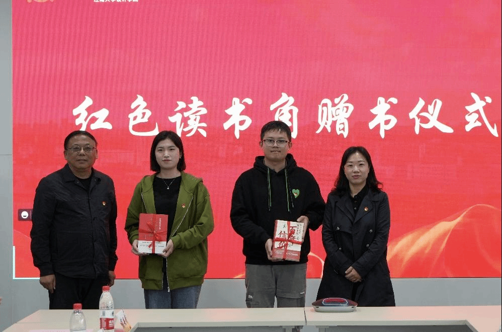活动最后,邱建平、王晖向交互设计党支部党员代表赠书。据了解,红色读书角由交互设计党支部牵头发起,旨在鼓励更多的青年党员学习伟大建党精神、把握时代脉搏,充分发挥样板党支部的示范、引领、辐射和带动作用。