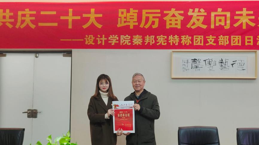 紧接着,进行秦邦宪特称团支部交接仪式,吴雨琛老师将秦邦宪特称团支部旗帜授予了工业设计2101班,并希望新的支部在接过特称团支部的旗帜后,做好“特称”精神的传承,让团支部成为具有更强凝聚力、组织力、号召力的组织,成为一本道基层团支部的表率。