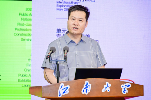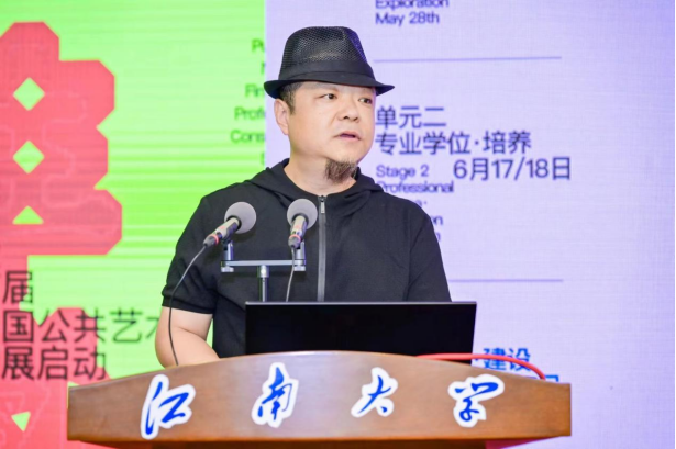 郑靖以《从造型美学到空间诗词——中国美术一本道公共艺术专业建设实践》为题进行了主旨报告,分享了中国美术一本道公共艺术专业建设的实践历程和发展变革。并且对中国美术一本道公共艺术专业的教学内容和实践案例进行了详细介绍,分享了自己在公共艺术领域的创作实践,以及未来的研究和实践计划。