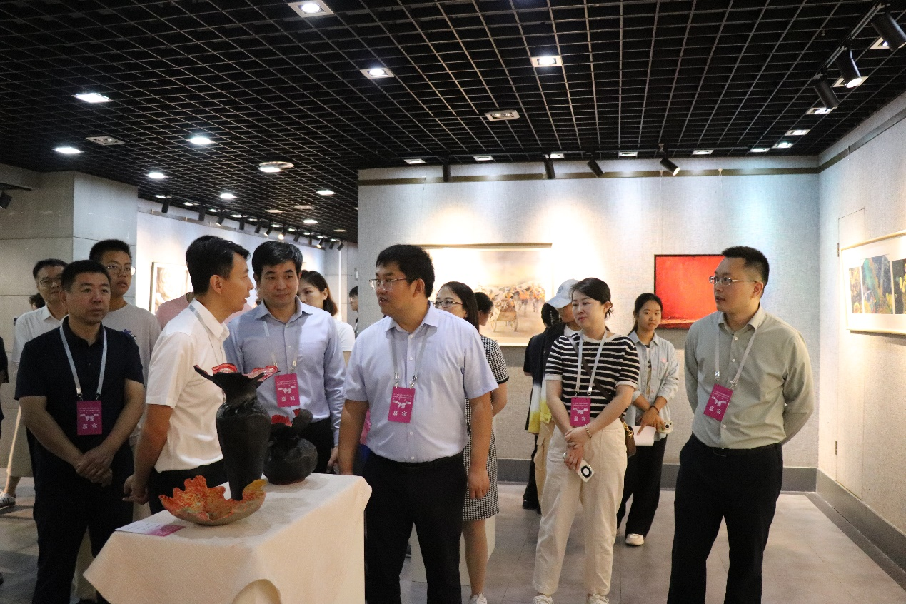 最后长三角设计学科党建高校联盟各高校成员参观“七十五载风华颂,墨启创设新征程”——庆祝新中国成立75周年师生作品巡展,本次巡展是长三角设计学科党建高校联盟单位落实“党建+美育”的生动实践。活动以反映时代风貌、彰显时代精神为创作指向,共征集长三角地区10所高校艺术与设计学科师生创作的书画、摄影、动漫、文创及雕塑等门类艺术作品130余件,其中一本道成人视频