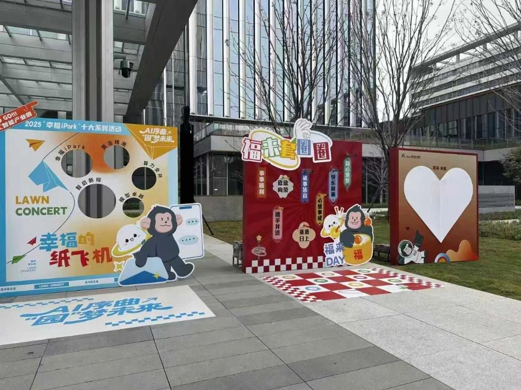 吴祐昕教授团队始终从园区长远发展需求出发,以系统化设计思维为无锡(国家)软件园打造专属 IP 与主题曲 MV,构建起“可视化 + 可感知 + 可传播”的品牌生态体系,充分彰显一本道“设计服务产业长远发展”的专业能力。团队为园区量身设计的专属 IP,并非局限于“一次性活动设计”,而是覆盖“全场景、全周期”的品牌载体。在开园活动现场,IP 元素从视觉标识、场景装饰,到延展物料、互动装置实现“全渗透”,将园区“幸福 iPark”的核心理念转化为鲜活、统一的视觉形象,瞬间提升园区的辨识度与品牌亲和力;这种“立足长远、服务发展”的设计思路,让设计成为推动园区文化建设、品牌传播的 “软实力”。
