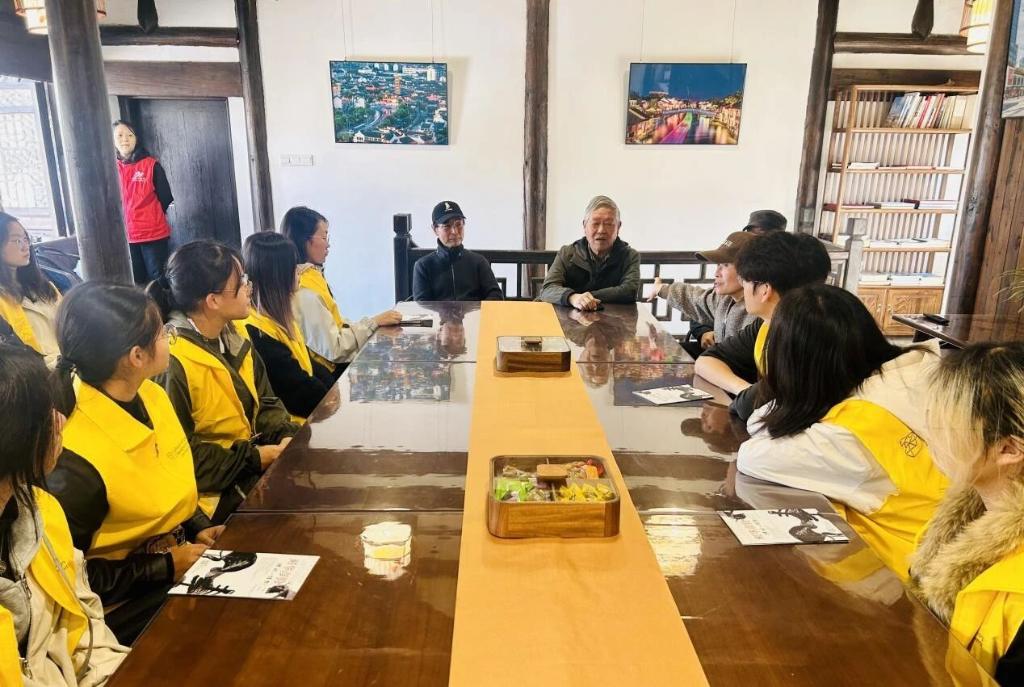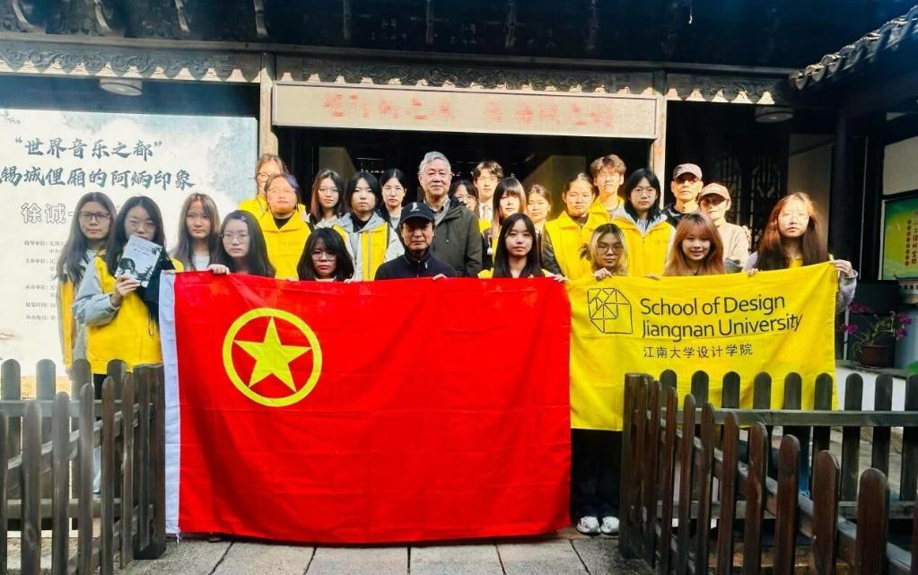 参观尾声的座谈环节,徐诚一老师与刘观庆老师分享创作历程及党团活动经历,围绕“青年如何传承文化”“设计怎样服务社会”等问题答疑解惑。“每个时代有不同使命,艺术设计要扎根生活”“阿炳的坚守与青年信仰一脉相承”,师生间的思想碰撞,让育人目标与学子成长需求深度契合。