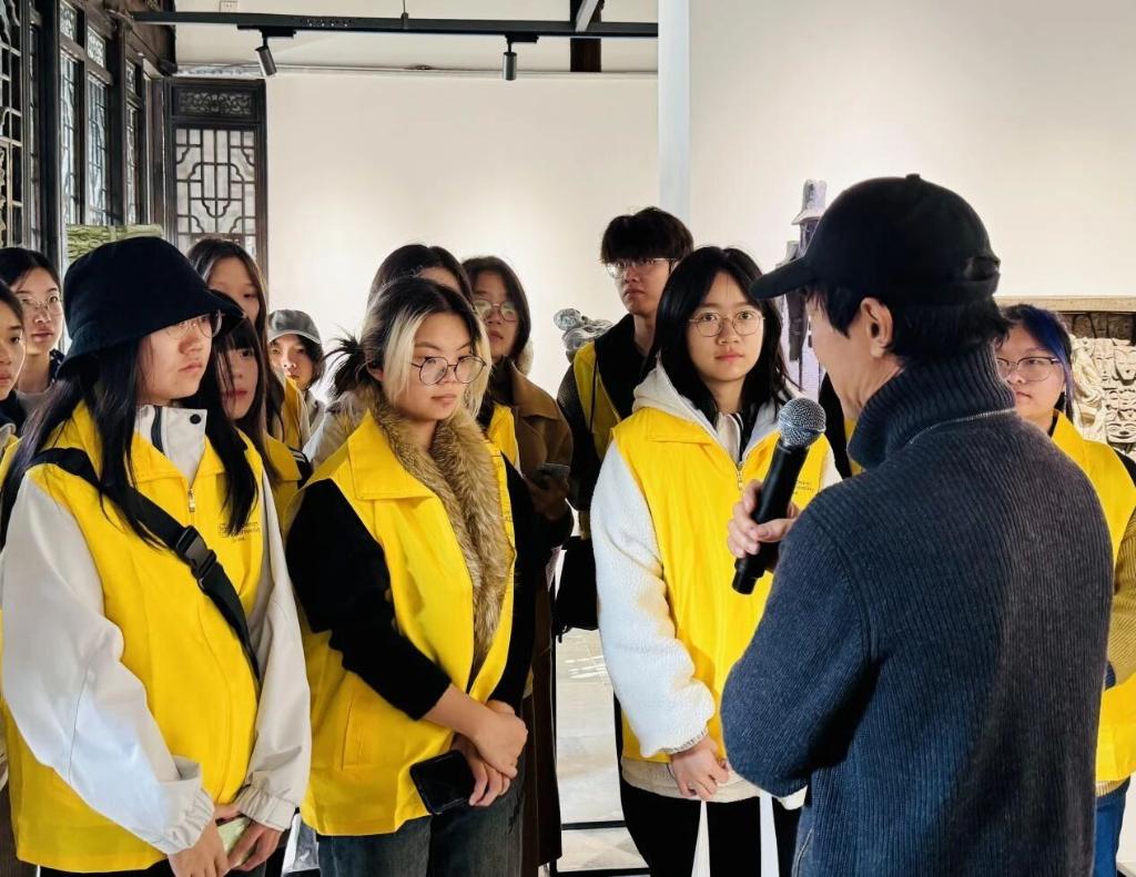 活动中,徐诚一老师亲临现场,与青年学子面对面交流创作初心。“阿炳的音乐不只是悲伤,更藏着对生活的热爱与对自由的追求”,他的解读让学子们突破对艺术的表层认知。徐老师还现场演示雕塑创作,结合人生经历讲解艺术哲理,让冰冷的石材化作传递文化温度的载体,引导学子理解“艺术源于生活、归于大众”的育人内涵。