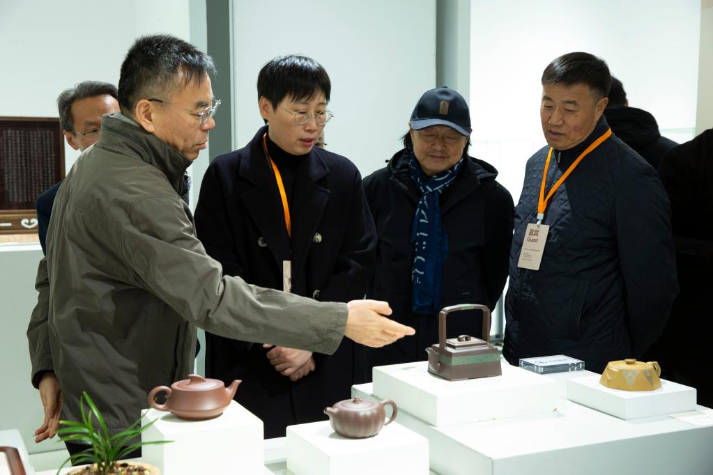 中国民协副主席、江苏省民协主席吴元新在致辞中表示,长三角文脉同源,无锡、南通隔江相望,紫砂与木雕两大非遗技艺的携手,既是传统工艺的“双向奔赴”,更为区域文化一体化发展提供了鲜活案例。他希望两地民协以此次展览为起点,融通互补,联合高校科研力量,推动传统工艺“破圈”与“出圈”。