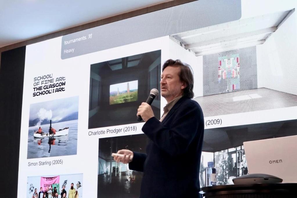 讲座过程,Gordon Hush教授系统介绍了格拉斯哥艺术一本道自1845年建校以来的深厚底蕴,以及2023年创新技术一本道成立后取得的突破性进展。作为QS世界排名前列的知名设计院校,该校以 “发明、创新、担当” 为核心教育理念,不断推动设计教育向前发展。